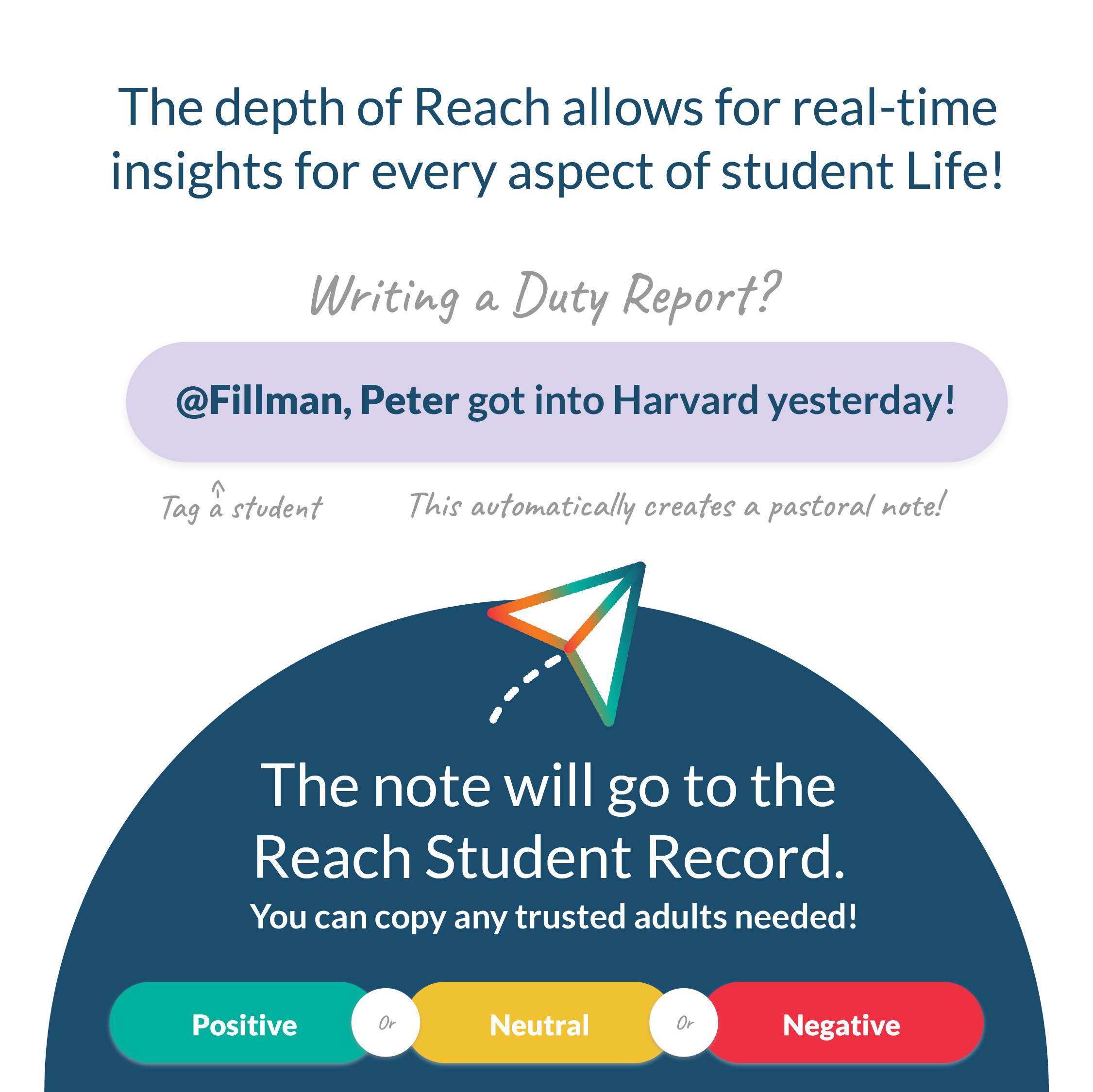 With colour-coded visualizations and accessible historical data, staff can quickly assess student needs and support them as they navigate this critical phase of life. Let Reach help your team stay proactive and efficient in caring for your students’ wellbeing.